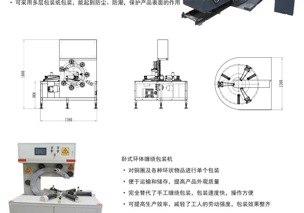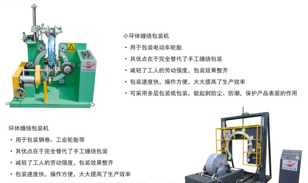 環體纏繞包裝機是專門為鋼圈、鋼絲、銅絲、輪胎、帶鋼等金屬環狀物品而設計、制造的一種新穎的纏繞包裝機,其優點在于完全替代了手工纏繞包裝,包裝速度快,操作方便,大大提高了生產效率,減輕了工人的勞動強度。包裝效果整齊。可采用多層包裝紙包裝,能起到防塵,防潮,保護設備表面的作用。